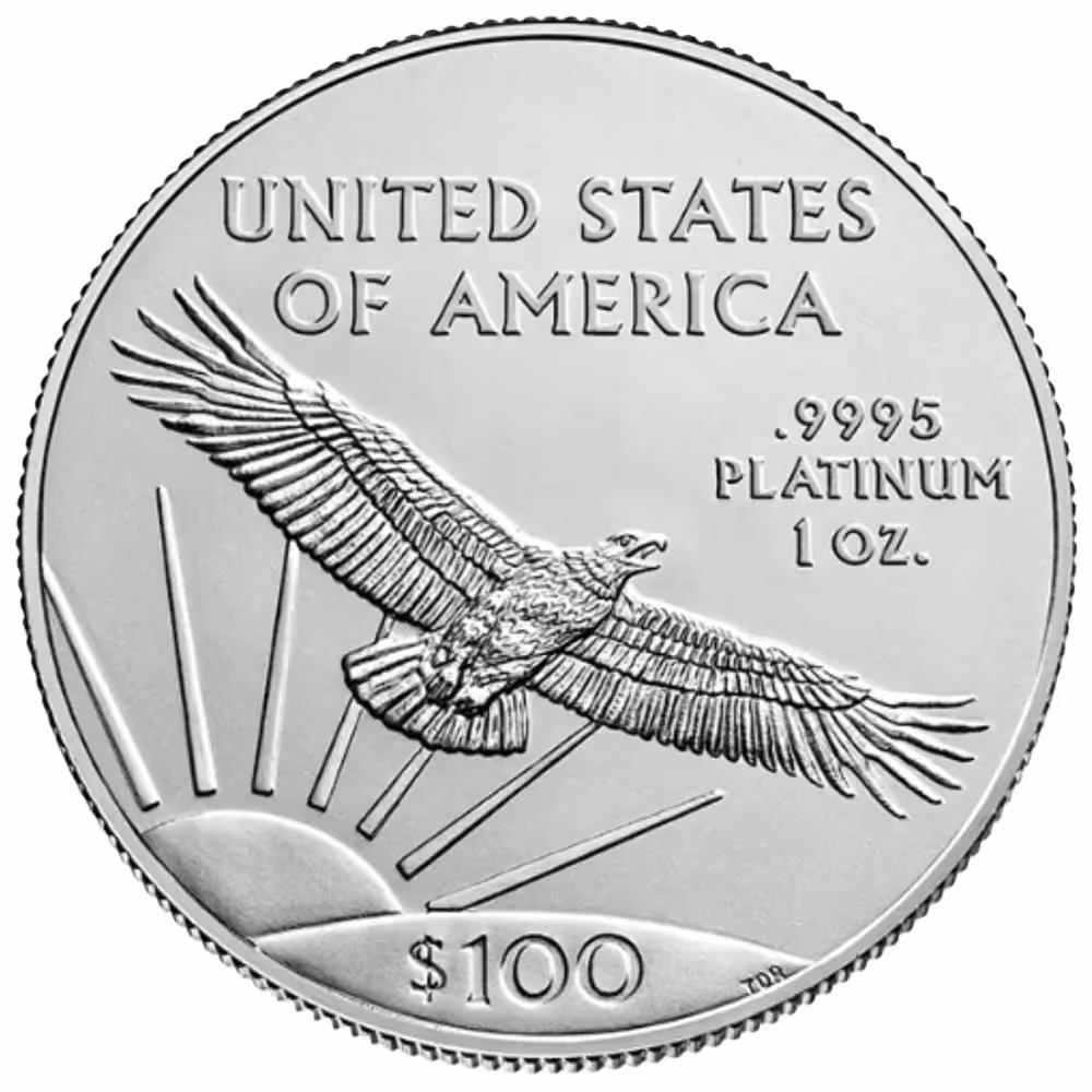 The 1 oz American Platinum Eagle is the official platinum bullion coin of the United States, first issued by the U.S. Mint in 1997. It is struck from .9995 fine platinum and has a face value of $100 USD, the highest of any U.S. bullion coin. Known for its purity, government backing, and legal tender status, the Platinum Eagle is a highly trusted investment option for those seeking exposure to platinum in a recognized and liquid form.