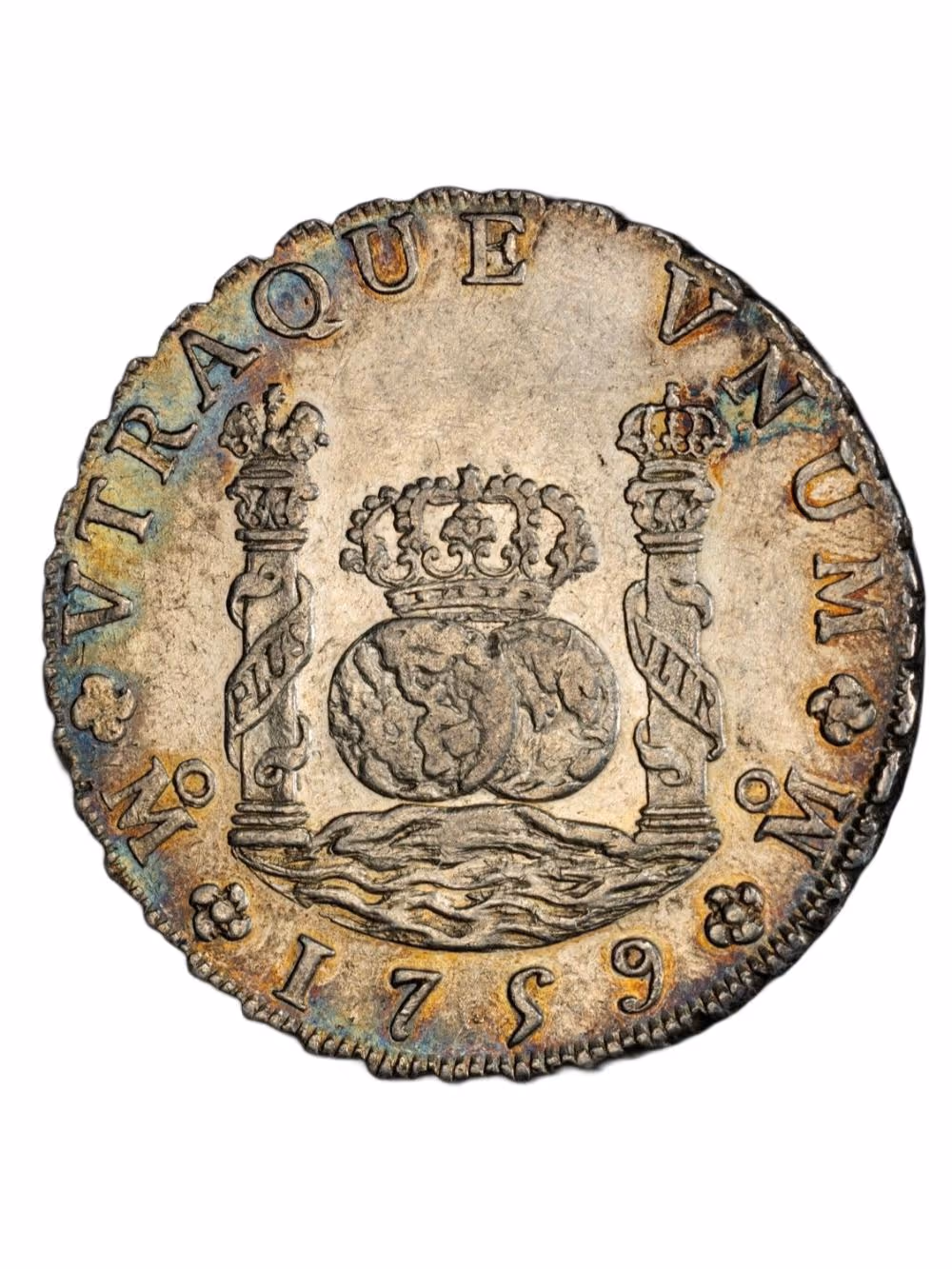 This 1759-Mo MM Mexico 8 Reales, struck under King Ferdinand VI at the Mexico City Mint, has been designated Cleaned with AU (About Uncirculated) Details by PCGS and displays attractive natural toning that enhances its original appeal. This is a quality coin to add to any historical collection.