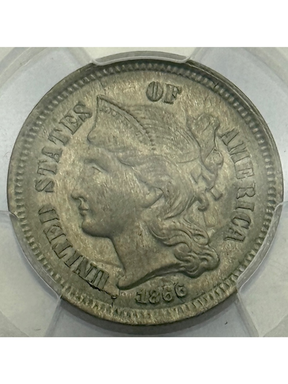 1866 3CN Three Cent Nickel, MS63 PCGS, Certified Coin.