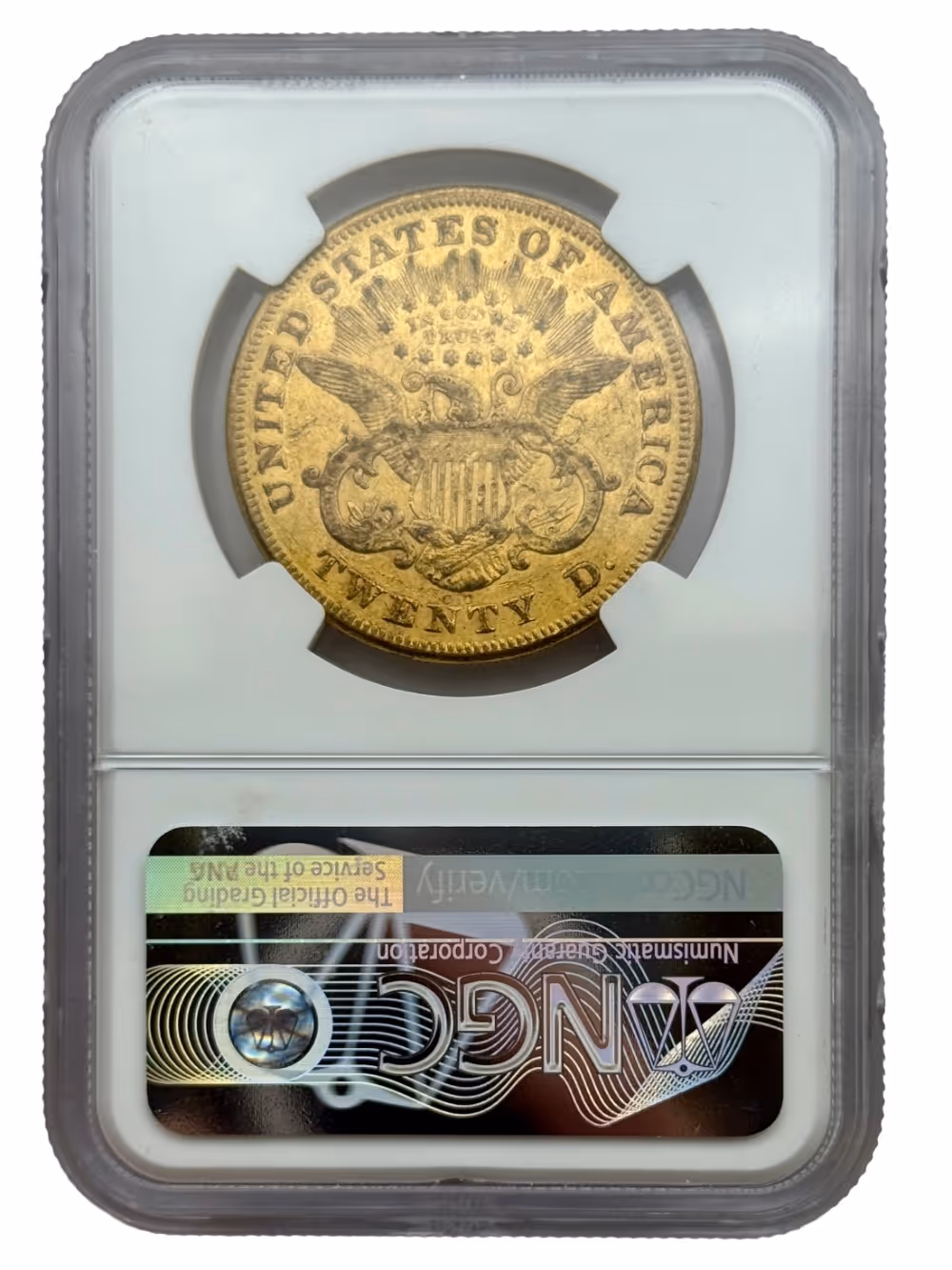 The 1876-CC Double Eagle is a prized coin for collectors of Carson City gold, offering both historic value and enduring eye appeal. Its AU53 grade ensures well-preserved design and collectible quality.