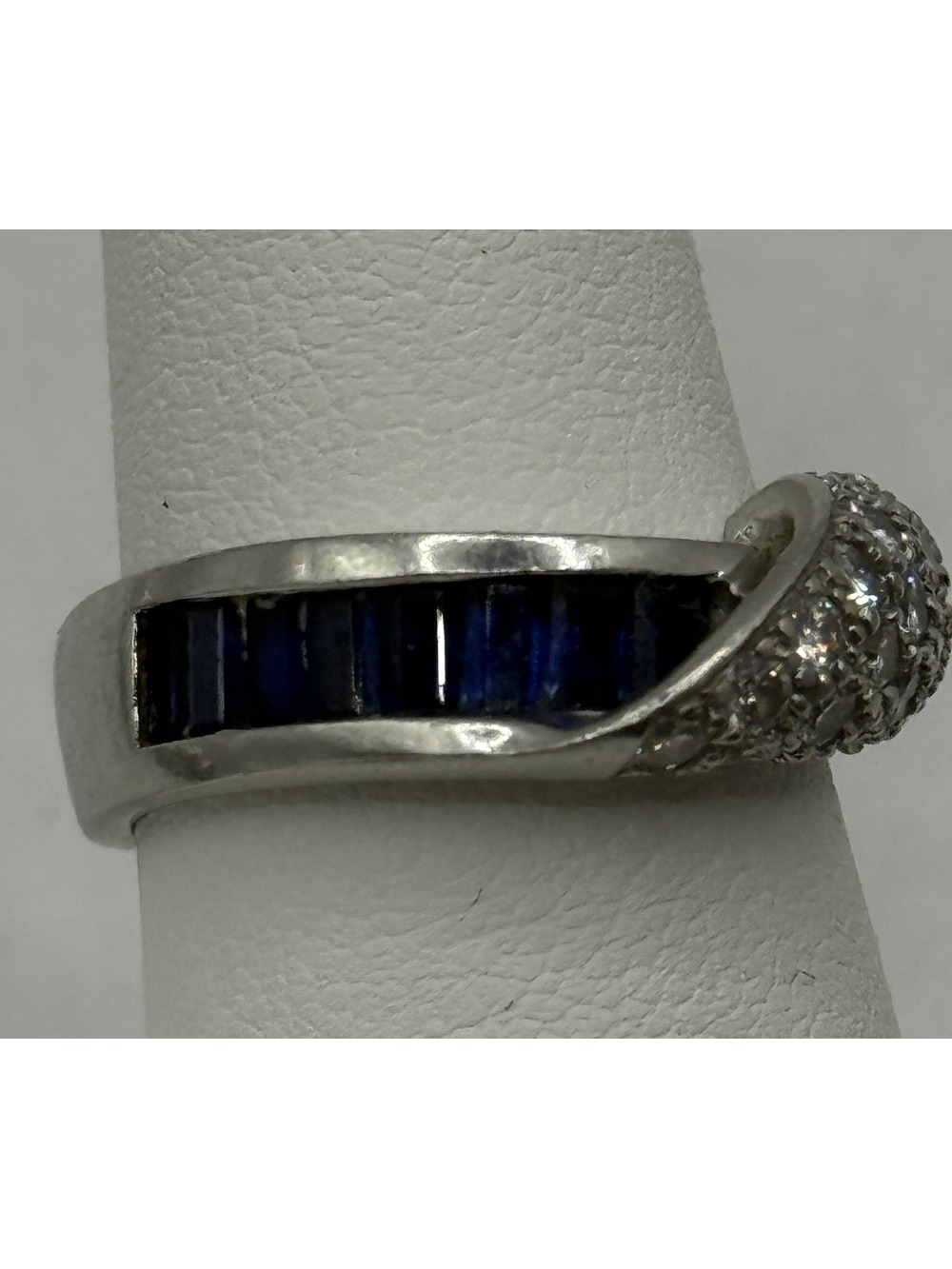Charles Krypell 950 Platinum Ring, Diamond & Blue Sapphire Size 6.5