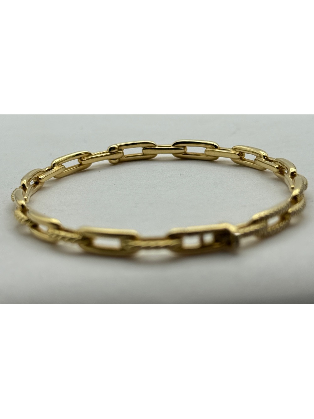 Condition: Pre-owned, excellent condition with minimal signs of wear. This David Yurman Stax Chain Link Bracelet is in excellent pre-owned condition. The 18K gold retains its rich luster, showing only very minor, light signs of wear consistent with careful use. There are no noticeable scratches, dents, or damage that detract from the bracelet’s overall appearance or elegance. This piece has been well-maintained and cared for, making it ready to wear immediately or a perfect addition to a luxury jewelry collection.